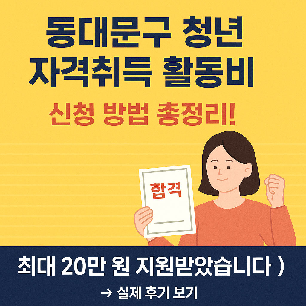 - 홈페이지: 동대문구청 자격취득 활동비 안내 바로가기